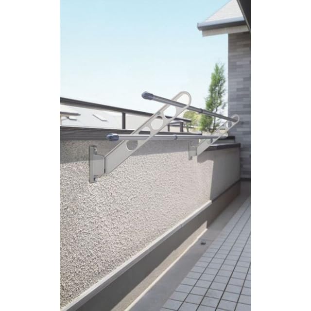 仕様:低い位置に洗濯物が干せる腰壁用物干し。3段活用で角度調節可能(水平-斜め上40°-収納)。収納したときに竿の位置を高く保つことができる「振り上げ収納」を採用。※取付パーツ付属無し。