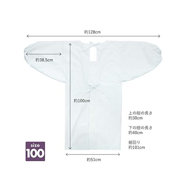商品名:[KIMONOMACHI] オリジナル 割烹着「白 無地 100cm」かっぽう着 おしゃれ シンプルデザイン 割烹着 かわいい 割烹着 和装 着物割烹着 定番 エプロン