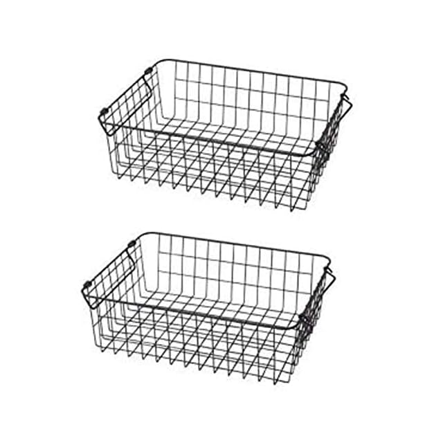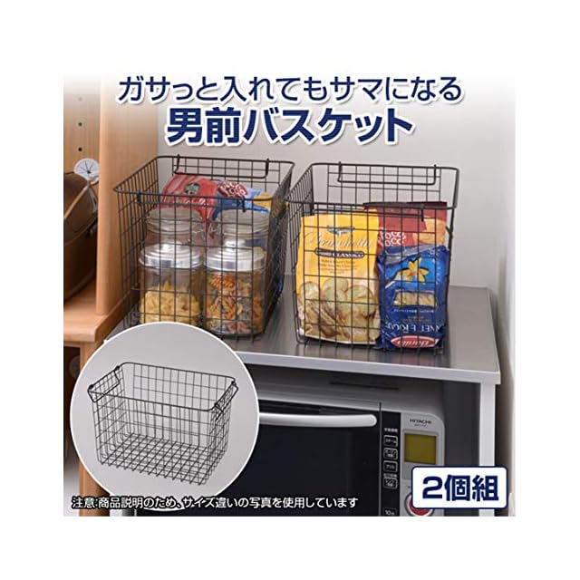 商品名:山善(YAMAZEN) ワイヤーバスケット 浅型タイプ(幅37 高さ12cm) 2個組 ブラック RWB-321(BK)*2