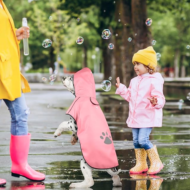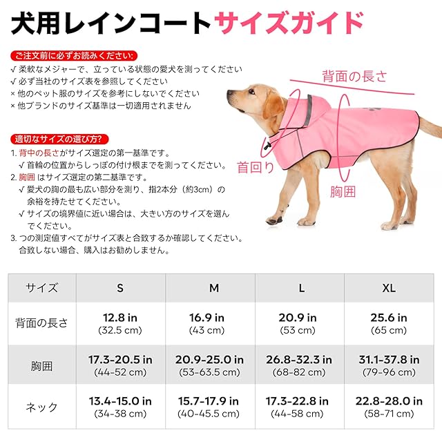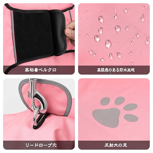 商品名:犬レインコート 防水 防風 通気性 軽量 透明フード付き 着脱簡単 マジックテープ調節可能 大型犬 梅雨対策 撥水加工 おしゃれデザイン 反射ステッチ 雨の日も安心 (ピンク, M)