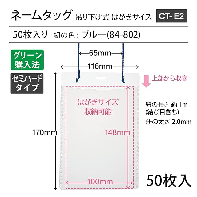 商品名:プラス 名札 ネームタッグ 吊り下げ式 イベント用 はがきサイズ 50枚 ブルー 84-802