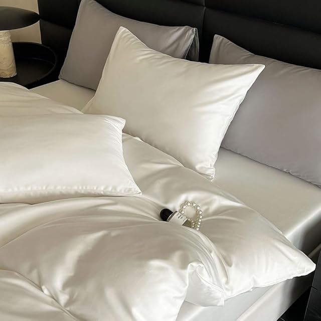 掛け布団カバー シングル 綿100% サテン織り 100番手双糸 超長綿 400本高密度生地 ホテル仕様 防ダニ 掛けふとんカバー ふとんカバー 布団カバー シルクのような肌触り 北欧 滑らか 柔らかい (150x210cm, ホワイト)