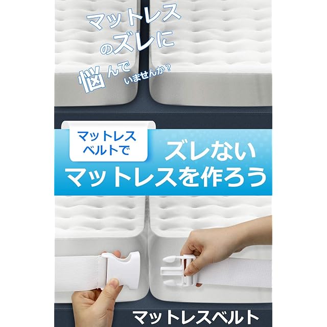 【隙間にフィットしてズレにくい】マットレスがズレないように固定するベルトがセットになることです。真ん中の隙間から解放され、快適な睡眠ライフができます。