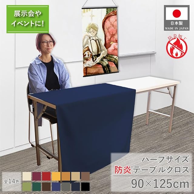 商品名:のれん工房 防炎 テーブルクロス 無地 コミケ イベント 展示会 説明会 125cm×90cm ハーフ 半分 コミックマーケット テーブルカバー 業務用 ハーフサイズ 全14色 ダークブルー 27125