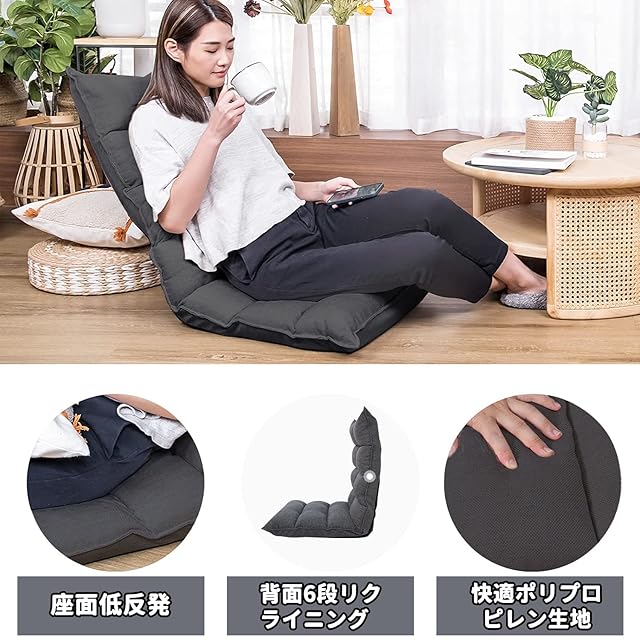 商品名:WAVV 座椅子 首リクライニング座イス 1人掛け フロアチェア 折り畳み 省スペース 背面6段階調整 座椅子 (ダークグレー)