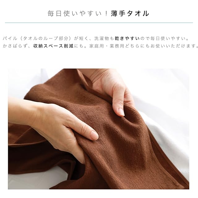 【拭き残し感ゼロへ】生地を織り上げた後に綿花の油分や不純物・糊を洗い落とす「後晒し製法」により吸水性に優れ、使い始めから拭き残し感が感じにくいです。※柔軟剤の使用は吸水性を疎外するので、できるだけ使用しないでください。