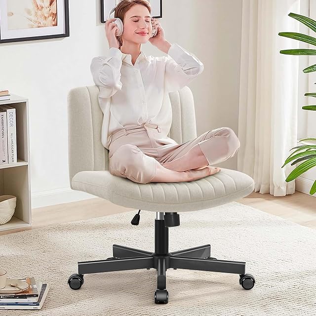 FelixKing デスクチェア あぐら 椅子 オフィスチェア 肉厚座面 布張り ソファチェア 肘掛けなし 疲れない 座面広い ホイール付き回転 10cm高さ調節可能 回転軽快な小型のソファ 一人掛け 小さなスペース 90°~120°ロッキング角度 キャスター付き パソコン 事務 学習 勉強 在宅 ワーク おしゃれ ベージュ