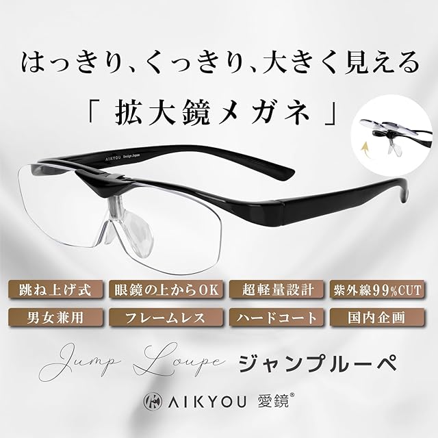 商品名:愛鏡 ルーペ メガネ 跳ね上げ式 拡大鏡 拡大鏡 メガネ 虫眼鏡 【国内企画】 拡大鏡 ルーペ 虫眼鏡 ルーペ メガネ型ルーペ 読書用ルーペ 1.6倍 1.8倍 2.0倍メガネの上から おしゃれ メガネ型 拡大鏡 メガネ型ルーペ 2カラー (2.0倍-ブラック)