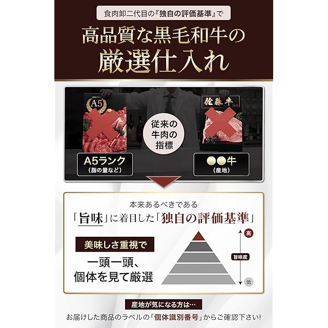 【最高品質の熟成黒毛和牛を堪能】 MARBLANCの黒毛和牛は、厳選された食肉卸の技術で、旨味成分を従来の4倍にまで引き上げています。冷蔵状態で最長14日間保存可能な特別な包装「マーブランパック」を使用しているため、鮮度を保ちながらお客様のもとへお届けします。すべてのメニューが黒毛和牛100%の高品質な肉を使用しており、料理の際には豊かな香りと柔らかな食感をお楽しみいただけます。
