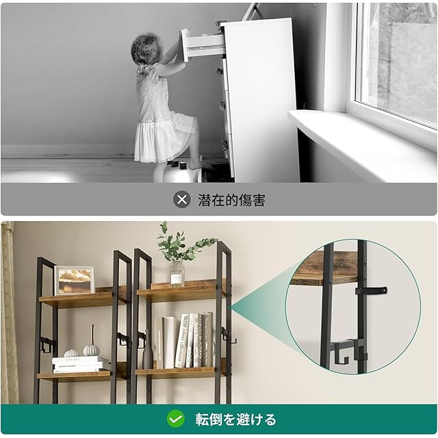 CJMM オープンシェルフ ラック 5段収納ラックです 幅35奥行30高さ170cm可動フックを4つ追加しましたレトロ色の工業風木製ラックです五階建ての本棚…