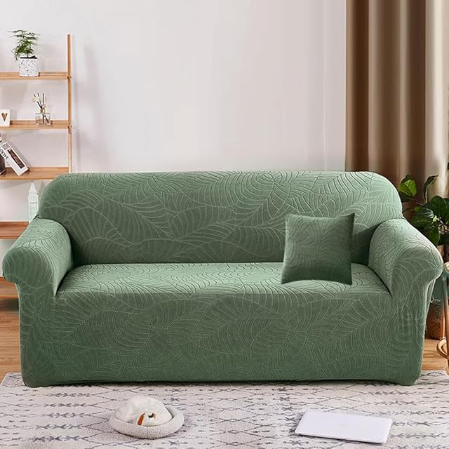 ソファーカバー 肘付き 3人掛け 撥水加工 葉紋様 ソファーシート クッションカバー1枚付 滑り止め 汚れ防止 傷防止 爪とぎ防止 耐久性 通気性 伸縮性 ソファーパッド 洗える ソファーマット ソファシート マルチカバー 四季適用(ライトグリーン 195*230)