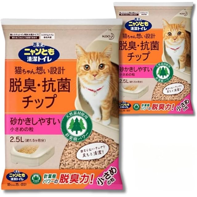 商品名:ニャンとも清潔トイレ 脱臭・抗菌チップ 小さめの粒 2.5L×2袋セット 猫砂 まとめ買い