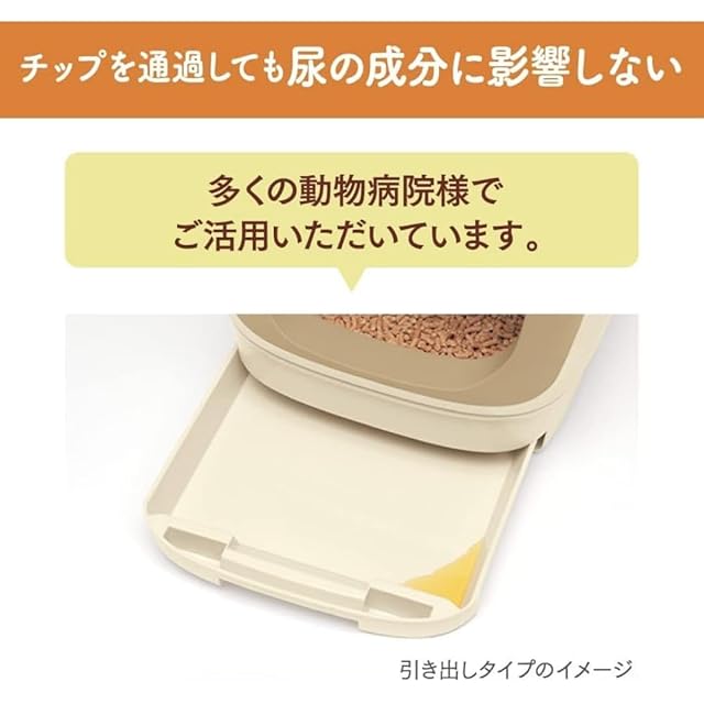 ●主原料は天然素材の針葉樹 針葉樹には、ニオイや菌の増殖を抑える成分*が含まれています。針葉樹の効果でパワフルに脱臭&しっかり抗菌(※2)。猫ちゃんが触れるチップだから、人工香料、抗菌剤は使用していません。*フィトンチッド(総称) ●足もとサラサラでいつも清潔 オシッコで固まらず表面サラサラなので、猫ちゃんの足もとはいつも清潔。毎日のトイレのお掃除はウンチを取り除くだけです。 ●慣れやすく砂かきしやすい 子ねこでも慣れやすく、砂かきしやすい小さめの粒。 ●取り替え時に粉が舞い散らない ※2すべての菌を抑制するわけではありません