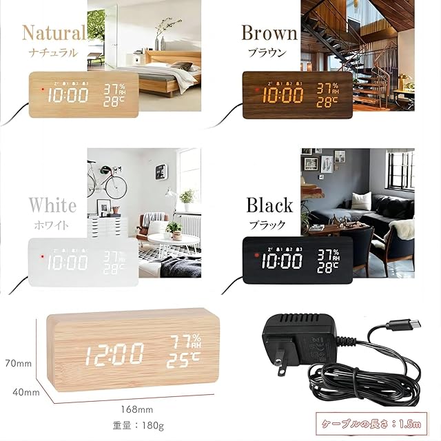 【LED電波式置き時計】:この製品には電波校正機能があります。起動後すぐに電波受信が始まるので、正確な時刻情報をのせた電波を受信し、自動的に表示時刻を修正するクロックです、設定不要でご使用頂けます。時刻の正確性に心配する必要がありません。細かい機能も簡単に設定できるように、日本語の取り扱い説明書も付属します。付属のケーブルからの給電となります。お届け後すぐにお使い頂けます。