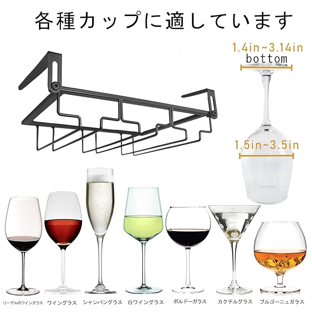 取り付けが簡単: のワイングラスホルダー を取り付ける場合は、ねじを使わず使用できる所もお手軽でよいですし、家具を傷めないなので、賃貸住宅で穴を開けられないという方に良いと思います、数分で簡単に設置できます,注意点:扉がある場合は、閉めた後、扉と板の間に3mm以上の隙間が必要です。