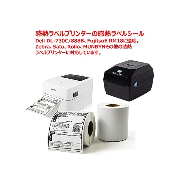 1、サーマルラベル用紙 配送ラベル印刷 4×6インチ A6サイズ相当 配達 小包 物流 クリックポストラベル対応、Deli DL-730C /DL-888B/Fujitsu ERM18/DPL4010、D520-BT、BY-480BT、SATO T408/T412/CF408Tに適応。Zebra / Eltron、MUNBYN、Rollo、Intermec、Datamax、Fargo、Sato、NEXなど市販のほとんどのデスクトップサーマルラベルプリンターに対応しています。<br> 2、ラベルサイズ:約100×150mm(ロール式:350枚/巻、折仕上げ ジャバラ式:500枚/包)。<p><p> 3、現在クリックポストは4枚をA4一枚に出力する仕様になっているため、4枚をそのまま印刷することはできません。<br> ・新規用紙サイズ作成方法は下記に記載します。<br> 設定→デバイス→プリンターとスキャナー→Deli DL-xxx→管理<br> 順にクリックして プリンターの管理パネルを出してください。<br> 管理パネルから印刷設定を開いて、用紙タブを開きます。<br> このタブで[新規(W)…]をクリックして、<br> 新しい用紙を設定します。<br> 用紙仕様下記通りでお願いします。<br> 名前:100×150mm<br> 種類:ダイカットラベル<br> サイズ:<br> 幅 100mm 高さ 150mm<br> 左端 1.3mm 右端 1.3mm<br> OKをクリックすると 先ほどの用紙タブから<br> a、一枚印刷に関してですが、郵便局のクリックポストサイトからPDFを書き出すとA4サイズの4分の1がクリックポストエリアになりますが、<br> プリンターの用紙サイズを100*150mmに設定して印刷倍率を100%にすると範囲内に印刷されます。<br> b、連続印刷に関してですが、枚数が多くて一括印刷したい場合は<br> PDFをダウンロードしてAdobe Readerで4分割する必要があります。<br> ・Acrobat Readerで表示し印刷<br> PDFファイルをAdobe Acrobat Readerで開きます。<br> ここでは無料で使えるAdobe Acrobat Reader DCを使って説明しますと<br> Adobe Acrobat Reader DCで[印刷]を選ぶ<br> [プリンター]を選ぶ<br> [ページ設定]ボタンをクリック、100*150mmを選択。<br> 印刷のウィンドウに戻り、ページサイズ処理では[ポスター]を選択<br> 倍率を調整する(たとえば96%を入力)。<br> 印刷してみて成功すれば終了。だめなら倍率を再度調整して印刷。<br> c、また、印刷枚数が20枚以上の場合はサードパーティ製のChrome有料プラグインがおすすめです。<br> 100枚でも簡単に連携して一括印刷できます。弊社で使用しているのは「クリックポスト一括登録決済印刷v3」です。<br>