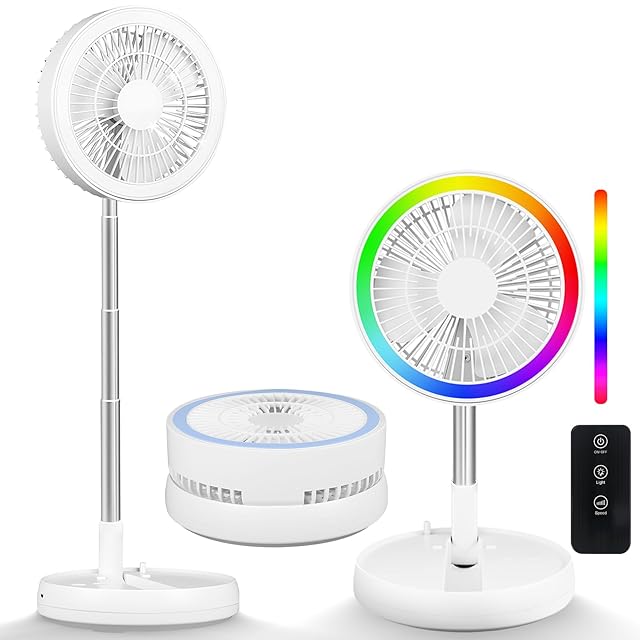 【2025年節電対策・7200mAh電池・12段階のカラフルライト】扇風機 折りたたみ dcモーター 95-1000mm伸縮式 リビング 扇風機 卓上 usb充電式 リモコン付き 静音 高さ自由調節 4段階風量調節 リズム風付き コンパクト収納 室内 アウトドアに適用 (01)