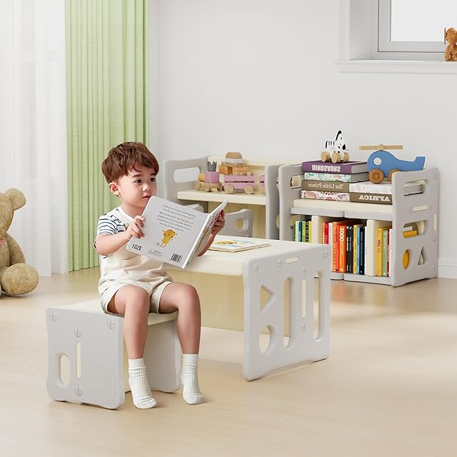 【多機能設計】さまざまなニーズに対応する多機能設計。 ソファ、アクティビティテーブル、学習机として使える子供用テーブル&チェアセットです。 子どもたちはテーブルで食べたり、書いたり、遊んだりすることができます。 日常生活のさまざまなシーンに対応します。
