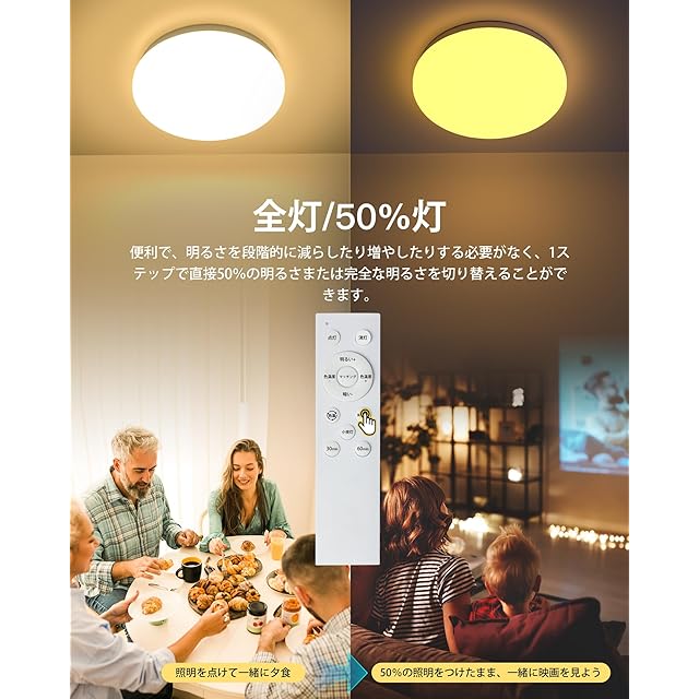 ✅【メモリ機能&タイマー機能】照明シーリングライトにも便利なメモリ機能があり、前回の設定を自動的に記憶します。LEDシーリングライト持つメモリ機能,お好みの色と明るさを調整すると、次回も同じ設定でご利用いただけるため、設定の手間を省くことができます。また「LampSmart Pro」アプリでは、シーリングライトの点灯・消灯時間を設定できる。リモコンとスマートライフアプリには、睡眠タイマー機能が追加されています。リモコンには睡眠タイマー(30/60分後に自動消灯)に設定されていると、消灯忘れの心配はありません。