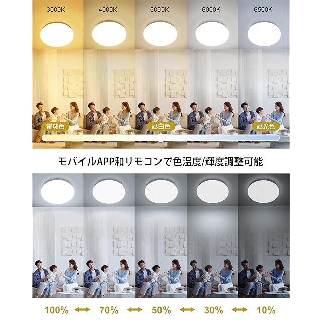 ✅【モバイルAPP和リモコンで色温度/輝度調整可能】LONFANTAR LEDシーリングライト色温度/輝度調整可能,電球色/昼白色/昼光色/常夜灯,3000K/4000K/5000K/6000K/6500K,輝度10%-100%自由に変換できます。無段階調節により、環境に応じて適切な光線設定を調整して、心地良い、温かい、明るい感覚を提供します。リビングルーム/キッチン/寝室/書斎など、さまざまなシーンに適用できます。
