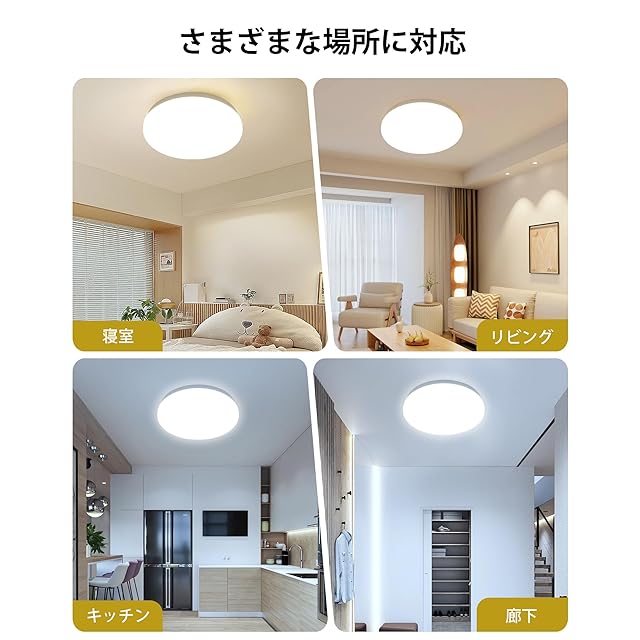 ✅【簡単取り付け&様々な場所で使用可能】ledシーリングライトはアダプターと本体の一体型設計を採用しており、複雑な部品の組み立ては不要です。照明を取り付ける際には、本体をプッシュして時計回りに回すだけで、簡単に取り付けが完了します。工具や配線は必要ありません。不慣れな方でも説明書を見るだけで簡単にシーリングライトを天井に取り付けることができます。このシーリングライトは、和室、寝室、バスルーム、リビングルーム、玄関、オフィス、廊下、店舗など、さまざまな場所で使用できます。