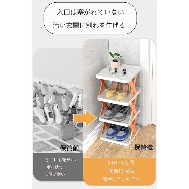 商品名:シューズラック 省スペース おしゃれ 靴箱 収納 折り畳み式 斜め 靴収納ラック 大容量 つっぱり 靴収納ボックス 組み立て式 下駄箱 収納 安定 軽量 靴 収納コンパクト 靴棚 耐久性 スリム 靴箱 スリム シューズボックス 狭い 玄関収納 長靴 スニーカー