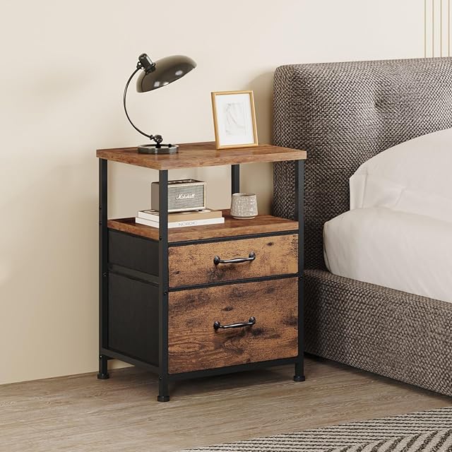 YeTom サイドテーブル ナイトテーブル 38*28*53.9cm 2つ引き出し付き 寝室 おしゃれ ミニ サイドチェスト 北欧 洋服 タンス 収納チェスト 3段 ソファ ベッドサイドテーブル 天板付き 収納付きテーブル キャビネット シンプル