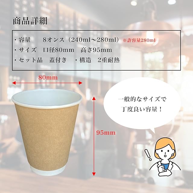 商品名:【50個 280ml】 イロカグ 断熱 紙コップ 耐熱 蓋付きセット 8オンス 使い捨てコップ 蓋付き紙コップ 耐熱紙コップ テイクアウト 業務用 満水時280ml irokaguポケットティッシュ付き商標登録済み