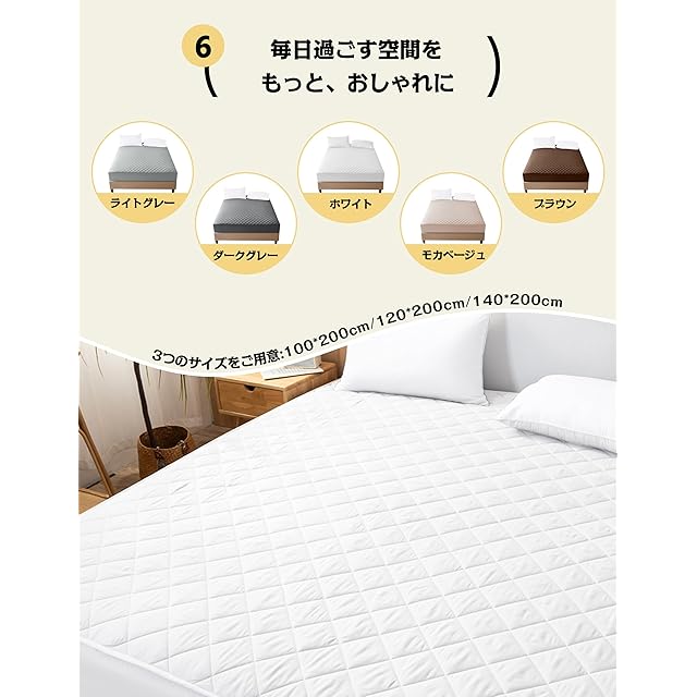 商品名:AYO ボックスシーツ 敷きパッド マットレスカバー パッド一体型ボックスシーツ ベッドパッド マットレスパッド 多層構造ベッドカバー 着脱簡単 柔らか 吸湿速乾 丸洗い可能 オールシーズン (ホワイト,100X200CM)