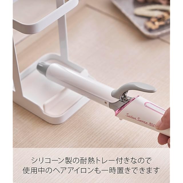 山崎実業(Yamazaki) 耐熱トレー付き ヘアーアイロンスタンド タワー ホワイト 約10.5X10.5X16.5cm タワー ヘアアイロンホルダー 5062