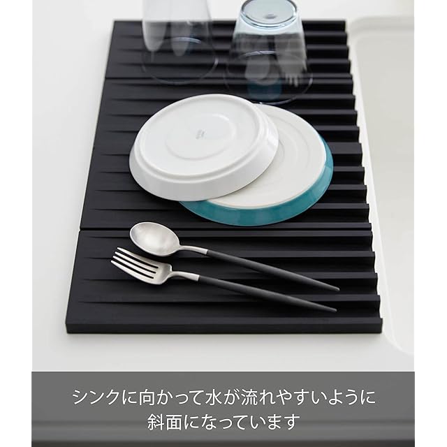 商品名:山崎実業(Yamazaki) 折り畳み 水切り トレー ブラック 約W40.5×D25×H1.3cm タワー tower 3way 水切りマット 水滴をそのままシンクに流せる 鍋敷き 3836