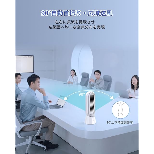 商品名:タワーファン 卓上 扇風機 小型 羽なし バッテリー充電式 卓上扇風機 小型4000mAh大容量 左右自動首振り スリム扇風機 3段階風量調節 パワフル送風 ミニ扇風機 デスクファン 省スペース 静音 (ホワイト)