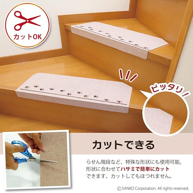 商品名:サンコー 階段マット ずれない 洗える 日本製 折り曲げ付 イヌ 犬 おくだけ吸着 55×21cm(折り曲げ55×4cm)15枚入 KD-56