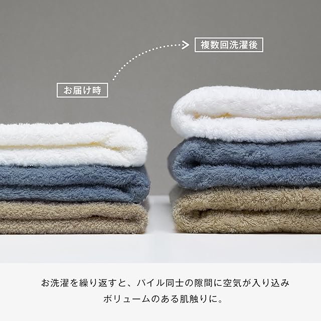 【お洗濯するたびボリュームアップ】お洗濯を繰り返すほどにパイル同士の隙間に空気が入り込み、ふわっとボリュームアップ。パイル一本一本が立ち上がるので吸水性もアップ!