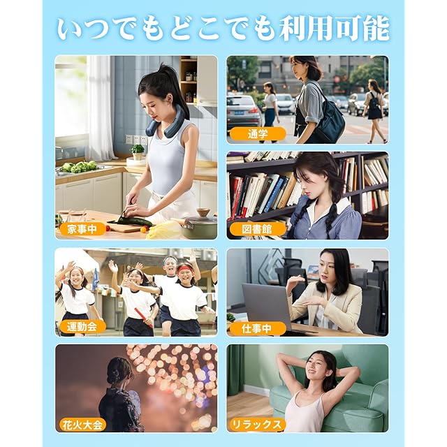 【究極の着け心地を追求・持ち運び便利】首に触れる部分には、高品質シリコン素材を採用し、肌に優しく、長時間の使用でもかぶれやかゆみを引き起こしにくい特性を持っています。人間工学に基づいた3Dフィット構造が、首の自然なカーブに沿って優しく包み込みます。軽量化にも徹底的にこだわり、本体重量はわずか360g、さらに重心バランスを最適化した設計により、首や肩への負担を最小限に抑えています。長時間着用していても疲れにくく、一日中快適にご使用いただけます。この先進的なマルチモードシステムにより、1台で春夏秋冬あらゆる季節の快適さをカバー。季節ごとに異なるグッズを準備する必要がなく、カバンやポーチに入れて外出先でも手軽に携帯可能、年間を通じて高い利便性を発揮します。
