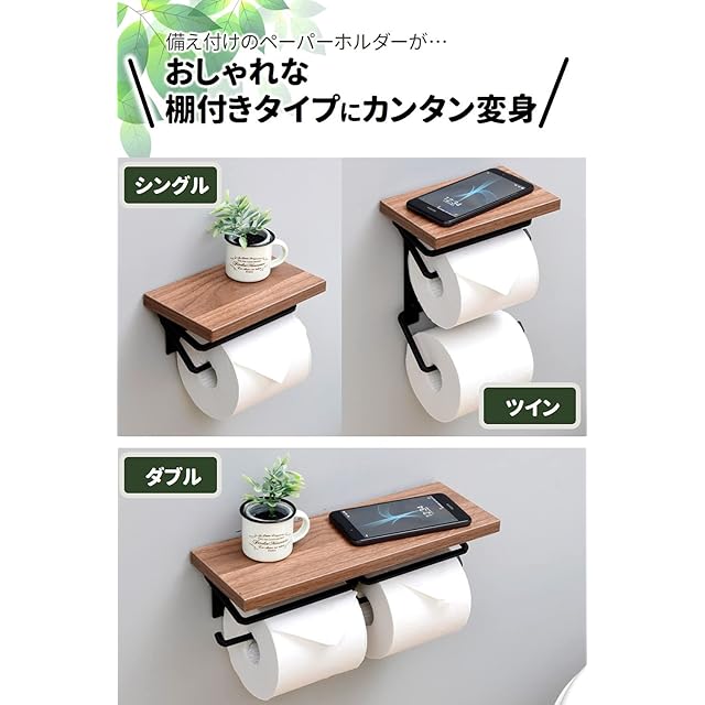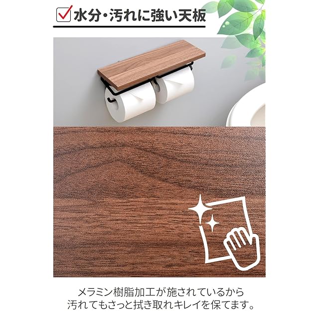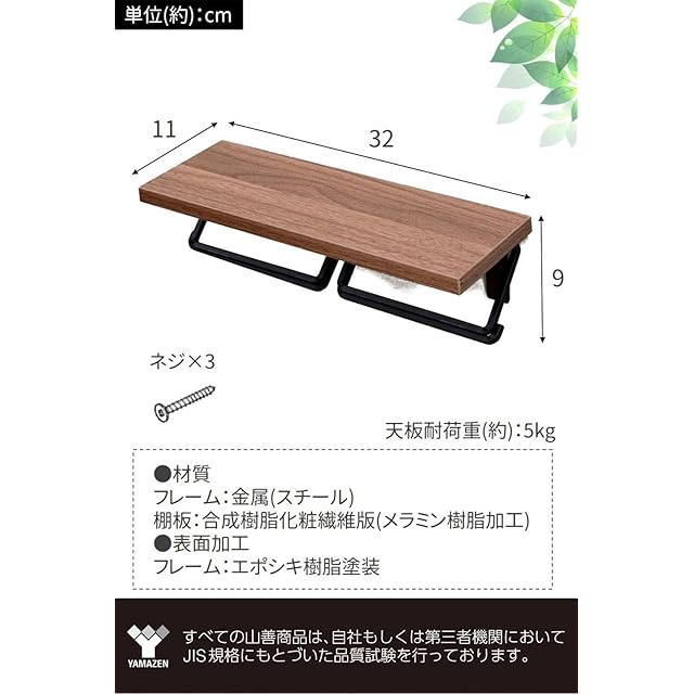 商品名:山善(YAMAZEN) トイレットペーパーホルダー 棚付き (スマホ置き/インテリア) ダブル 汚れに強い天板 かんたん設置 幅32×奥行11×高さ9cm ダークブラウン/マットブラック RPH-W(DBR3/MBK)
