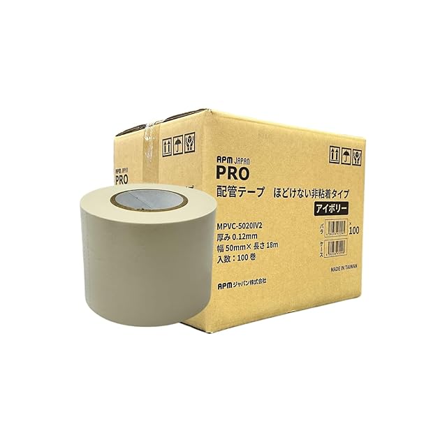 商品名:【箱売り】APMジャパン PRO ほどけない エアコン配管テープ 非粘着タイプ アイボリー 100巻セット 50mm×18m 補修テープ 絶縁テープ ビニールテープ 粘着なし