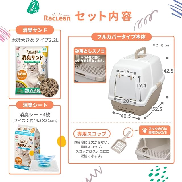 商品名:アイリスオーヤマ ラクリーン システムトイレスターターセットフルカバータイプ 消臭シート+サンド オープンタイプ ホワイト/ベージュ 猫 トイレ 猫トイレ システムトイレ RSTF-53