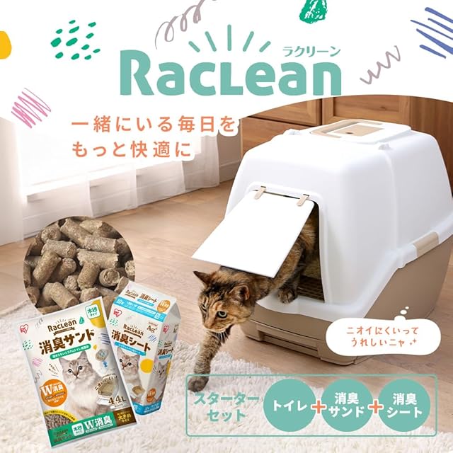 「ラクリーン 消臭システムトイレ フルカバータイプ」+「消臭サンド」+「消臭シート」の組み合わせで、気になるにおいを抑える猫用システムトイレ