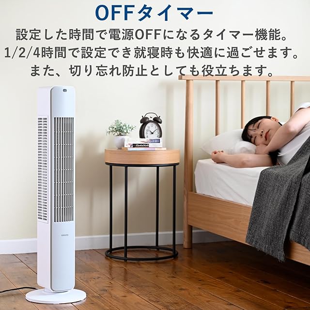 【タイマー】設定した時間で電源OFFになる切タイマー機能。1/2/4時間で設定でき、就寝時や切り忘れ防止に役立ちます。