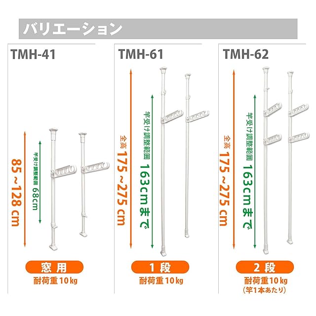 商品名:HEIAN SHINDO 室内物干し 竿受け 窓用 ホワイト 耐荷重10kg 高さ85~128cm TMH-41 平安伸銅工業