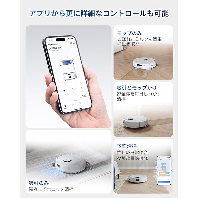商品名:【2025最新 超小型全能】ECOVACS (エコバックス) DEEBOT mini 吸引力8000Pa 全自動 ロボット掃除機 加圧回転式デュアルモップ 水拭き両用 自動ゴミ収集 コンパクト 小さい AI汚れ検知 毛が絡まない 自動モップ洗浄 モップ乾燥 高精度マッピング 障害物回避 ブラック