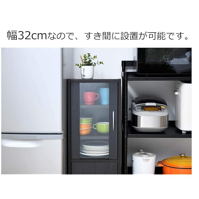 商品名:山善(YAMAZEN) 食器棚 (スリム) 幅32㎝ (ミニ) 高さ80×奥行29㎝ (扉が左右付け替えられる/棚板高さ調節) 一人暮らし 組立品 ダークブラウン CCB-8030(DBR)