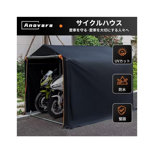 商品名:Anovara(アノヴァラ) サイクルハウス バイクガレージ サイクルポート 1台用〜3台用 自転車置き場 屋外 サイクルガレージ バイク ガレージ ガレージテント 自転車 テント 屋根 車庫 自転車小屋 バイク テント 耐水圧2000mm 防水防風防塵遮熱 (ブラック, Lサイズ: 幅160cm奥行218cm)