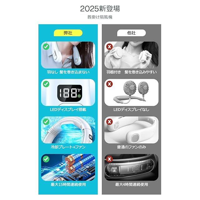 「2025年夏革新型·瞬間冷却首掛け扇風機」夏の暑さを乗り切るための最適なアイテム、2024年夏革新型「瞬間冷却ネックファン」が登場しました。冷蔵庫にも使用されている冷却技術を採用しており、外気温よりも最大-20℃まで冷却プレートを冷やすことができます。首周りや顔、後頭部まで立体的に冷却される設計です。特に夏の猛暑日や、長時間の外出時に最適です。公園での散歩や野外フェス、さらには通勤通学時にも大活躍します。