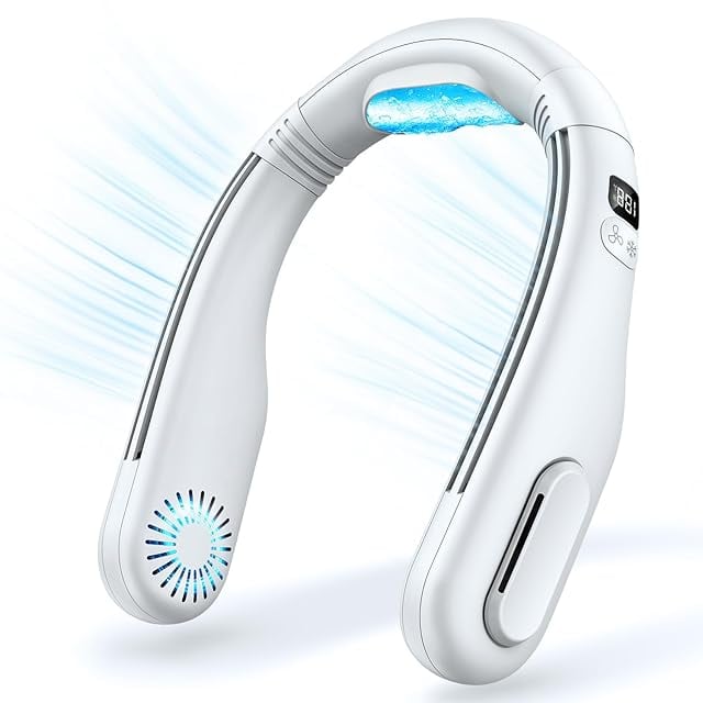 首掛け扇風機 ネッククーラー 携帯扇風機 【2025年夏新型&冷却プレート&LCD液晶ディスプレイ】 ネックファン 首掛けクーラー 2段階冷却モード&3段階風量調節 5200mAh大容量バッテリー 15時間連続長時間使用 ネックエアコン 軽量 静音 ハンズフリーファン 外仕事 熱中症対策 暑さ対策グッズ 花火大会/通勤通学/アウトドア/夏キャンプ/プレゼントなど (ホワイト)