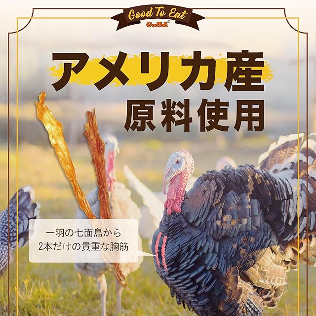 【天然素材、無添加】100%アメリカ産の七面鳥すじを使用。人工のフレーバー、色素、保存料を一切使用せず、高タンパク質、低アレルゲン、低脂肪、低カロリーを実現した犬用おやつ、愛犬の健康を支えます。