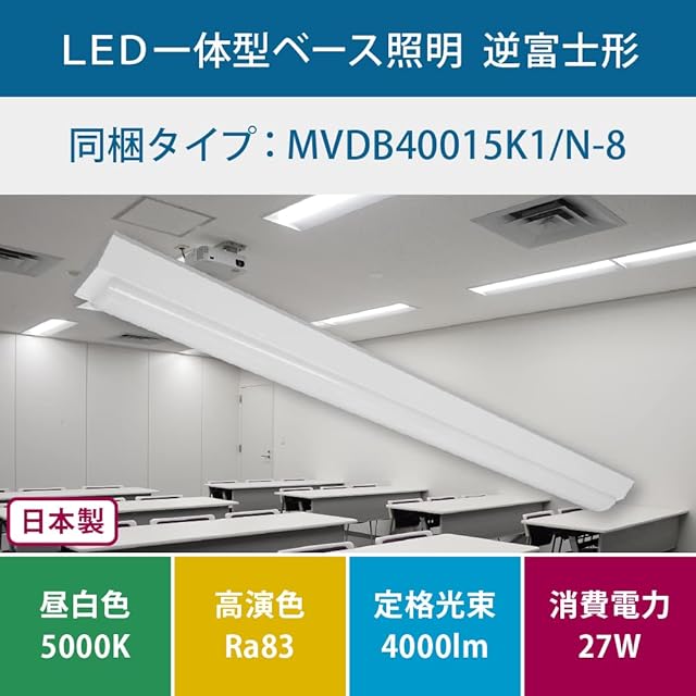 商品名:ホタルクス(HotaluX)日本製 LEDベースライト 40形 逆富士形 150幅 明るさ4000lm(FLR40×2灯相当) 昼白色(色温度5000K) Ra83 固定出力 省廃材で持ち運びしやすい「ユニット+本体」同梱タイプ MVDB40015K1/N-8