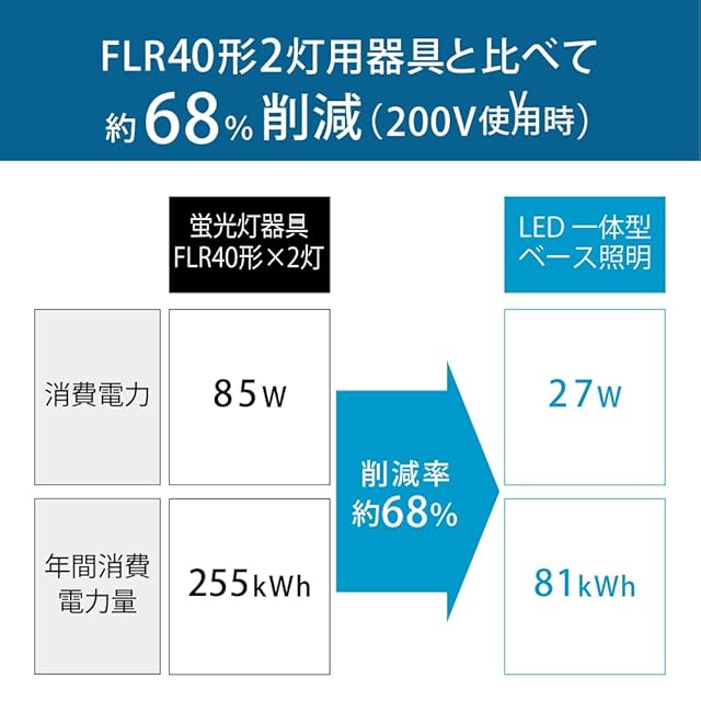 固有エネルギー消費効率:100V時148.1lm/W定格光束:4000lm消費電力27.0Wモジュール寿命:40000時間(光束維持率:85% 製品の寿命をするものではありません。)