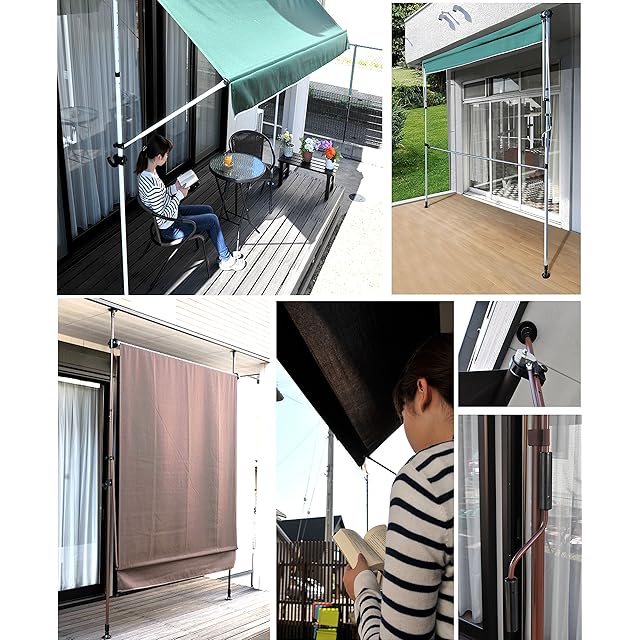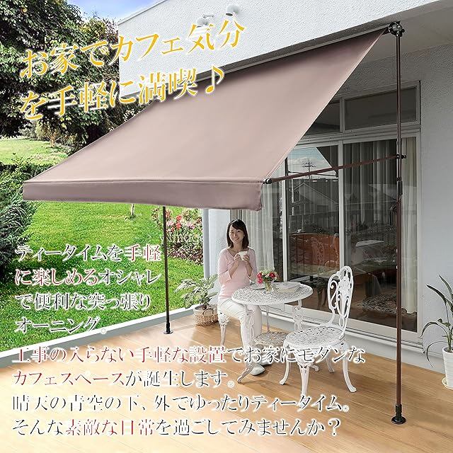 商品名:リビングアウト(Living Out) 物干し竿付きオーニング 日よけ アーム伸縮タイプ 幅2m ブラウン 工事不要 撥水加工 角度高さ調整 UVカット